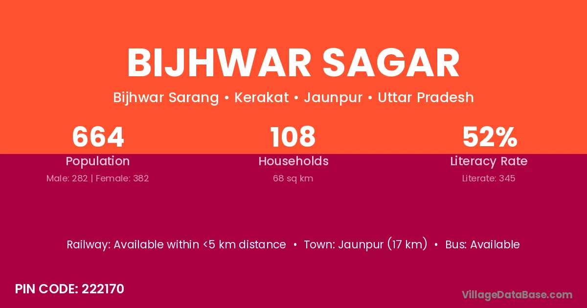 Jaunpur (17 km) is the nearest town to Bijhwar Sagar village for major economic activities and is located approximately 17 km away.