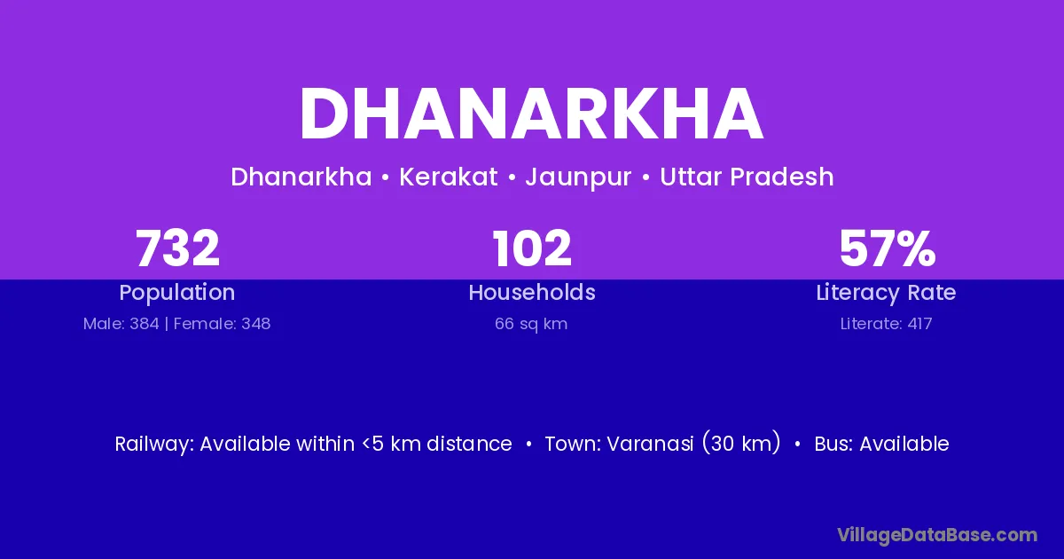 Varanasi (30 km) is the nearest town to Dhanarkha village for major economic activities and is located approximately 30 km away.