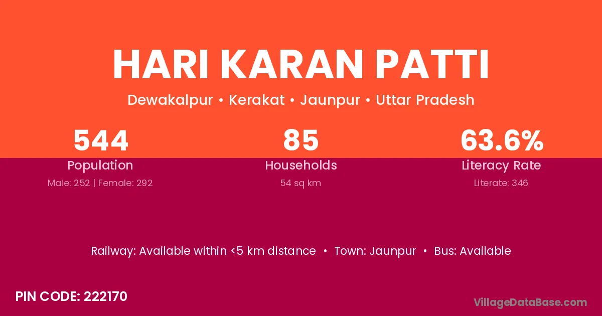 Jaunpur is the nearest town to Hari Karan Patti village for major economic activities