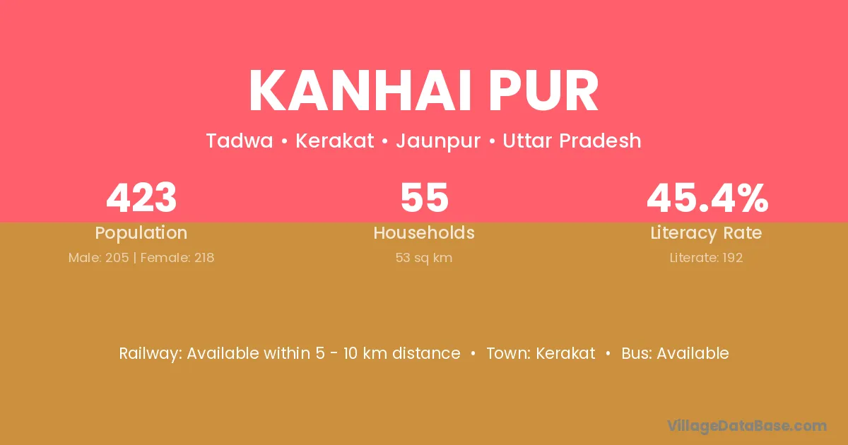 Kanhai Pur village has a total population of 423 people, of which 205 are males and 218 are females.