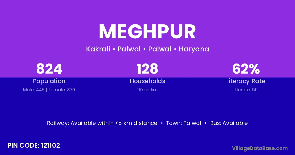 Jaunpur (23 km) is the nearest town to Meghpur village for major economic activities and is located approximately 23 km away.