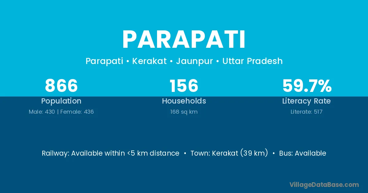 Kerakat (39 km) is the nearest town to Parapati village for major economic activities and is located approximately 39 km away.