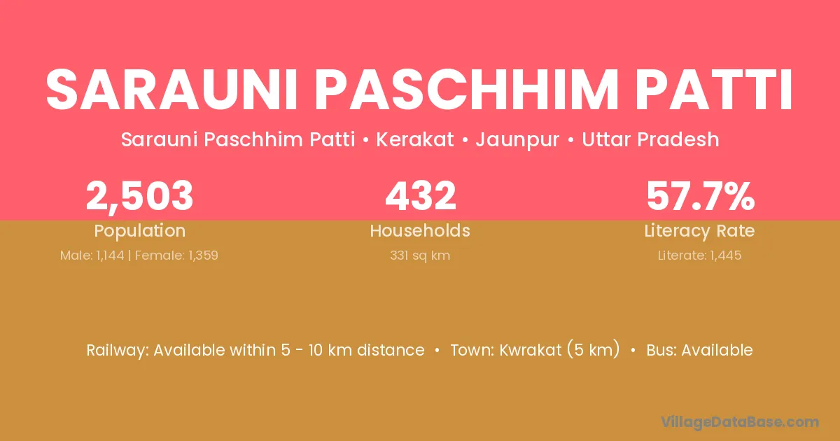 Kwrakat (5 km) is the nearest town to Sarauni Paschhim Patti village for major economic activities and is located approximately 5 km away.