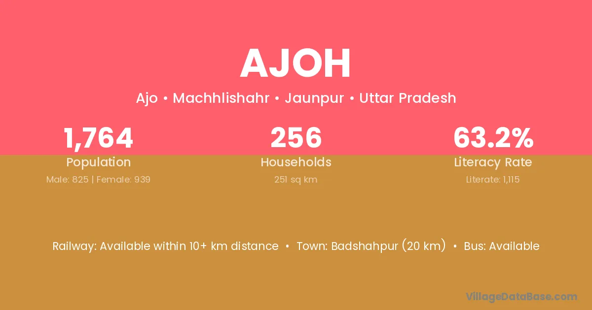 Ajoh village has a total population of 1,764 people, of which 825 are males and 939 are females.