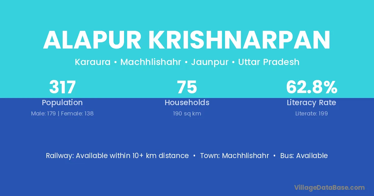 Machhlishahr is the nearest town to Alapur Krishnarpan village for major economic activities