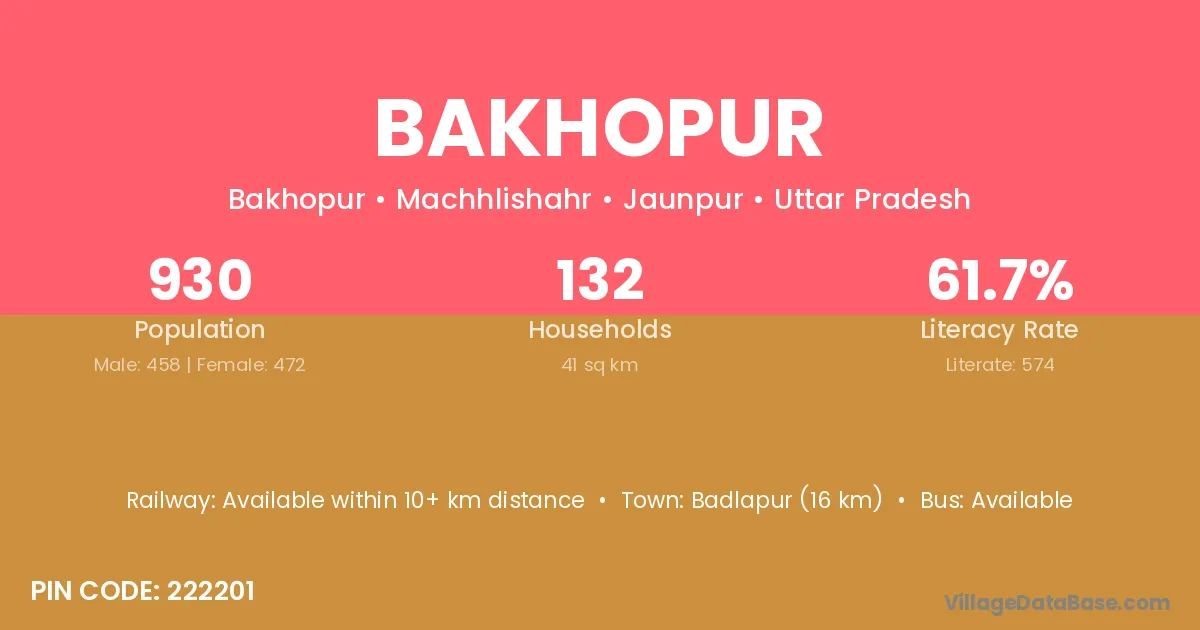 Badlapur (16 km) is the nearest town to Bakhopur village for major economic activities and is located approximately 16 km away.