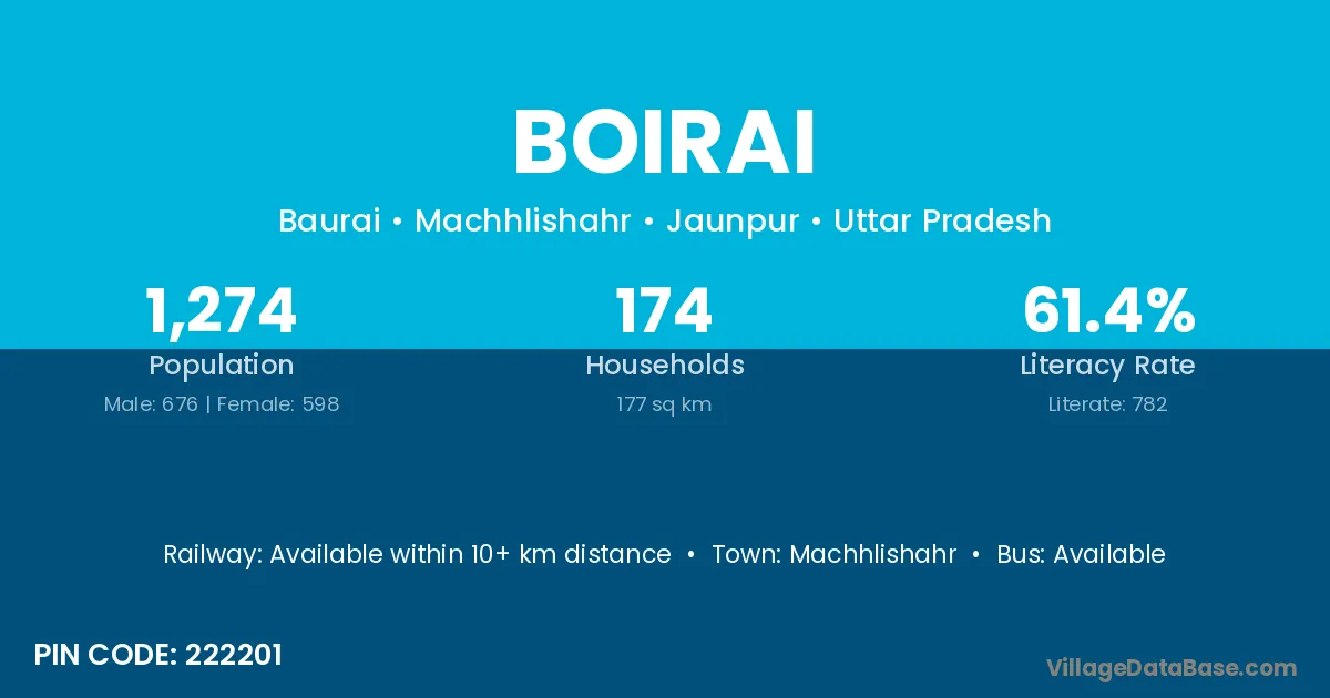 Machhlishahr is the nearest town to Boirai village for major economic activities