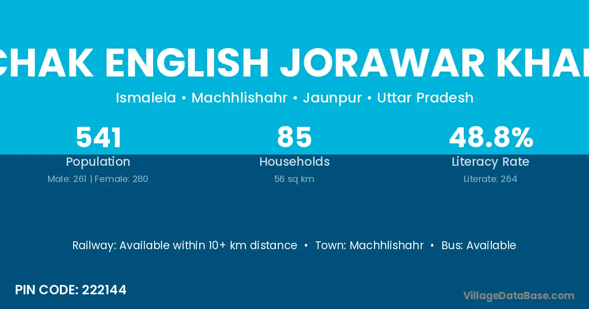 Machhlishahr is the nearest town to Chak English Jorawar Khan village for major economic activities