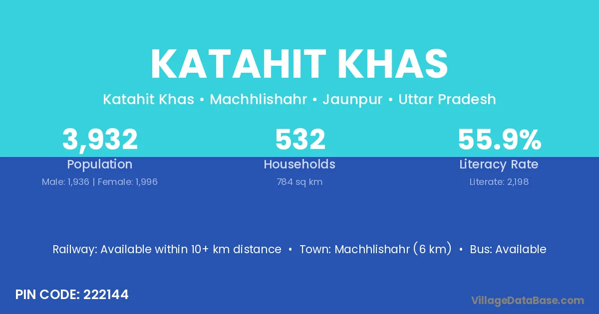 Machhlishahr (6 km) is the nearest town to Katahit Khas village for major economic activities and is located approximately 6 km away.