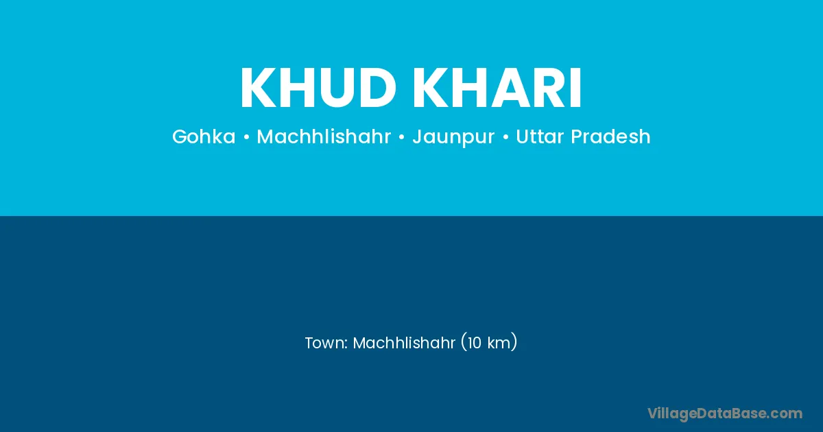 Machhlishahr (10 km) is the nearest town to Khud Khari village for major economic activities and is located approximately 10 km away.