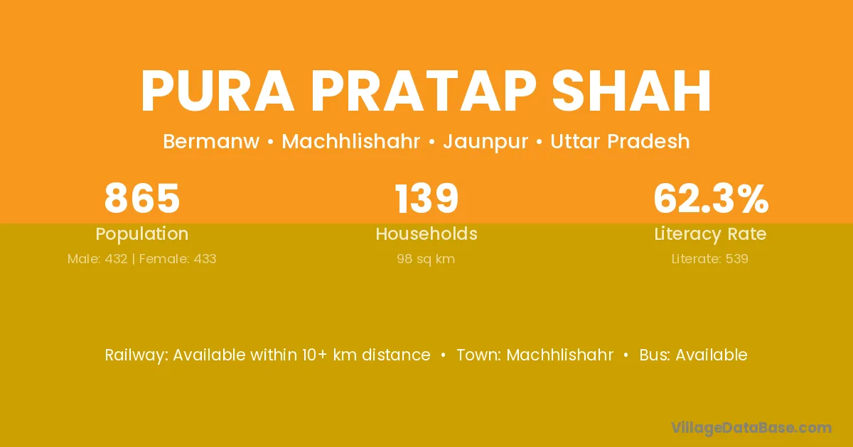 Pura Pratap Shah village has a total population of 865 people, of which 432 are males and 433 are females.
