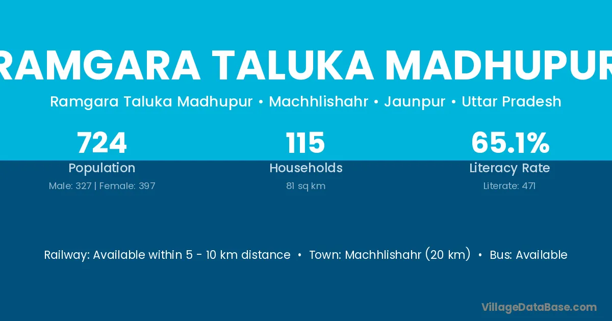 Machhlishahr (20 km) is the nearest town to Ramgara Taluka Madhupur village for major economic activities and is located approximately 20 km away.