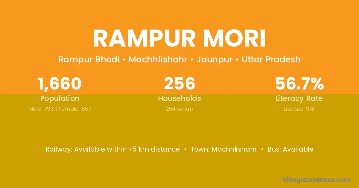 Machhlishahr is the nearest town to Rampur Mori village for major economic activities