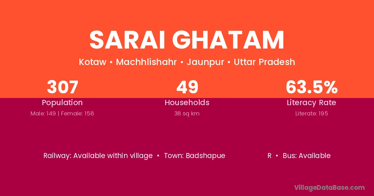Sarai Ghatam village has a total population of 307 people, of which 149 are males and 158 are females.