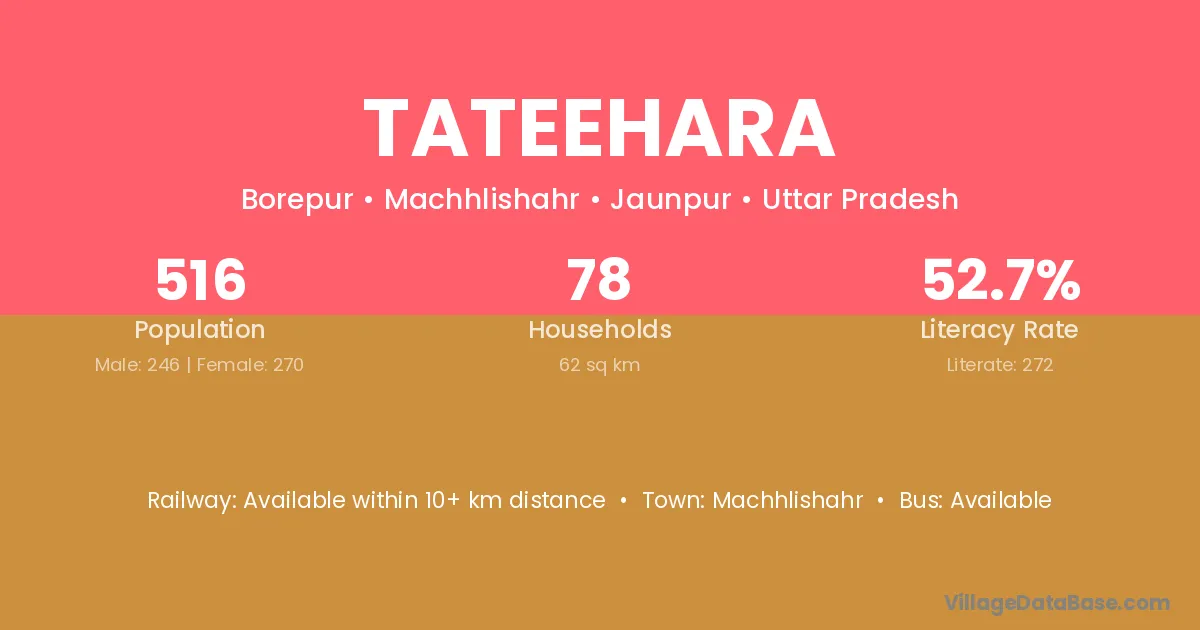 Machhlishahr is the nearest town to Tateehara village for major economic activities