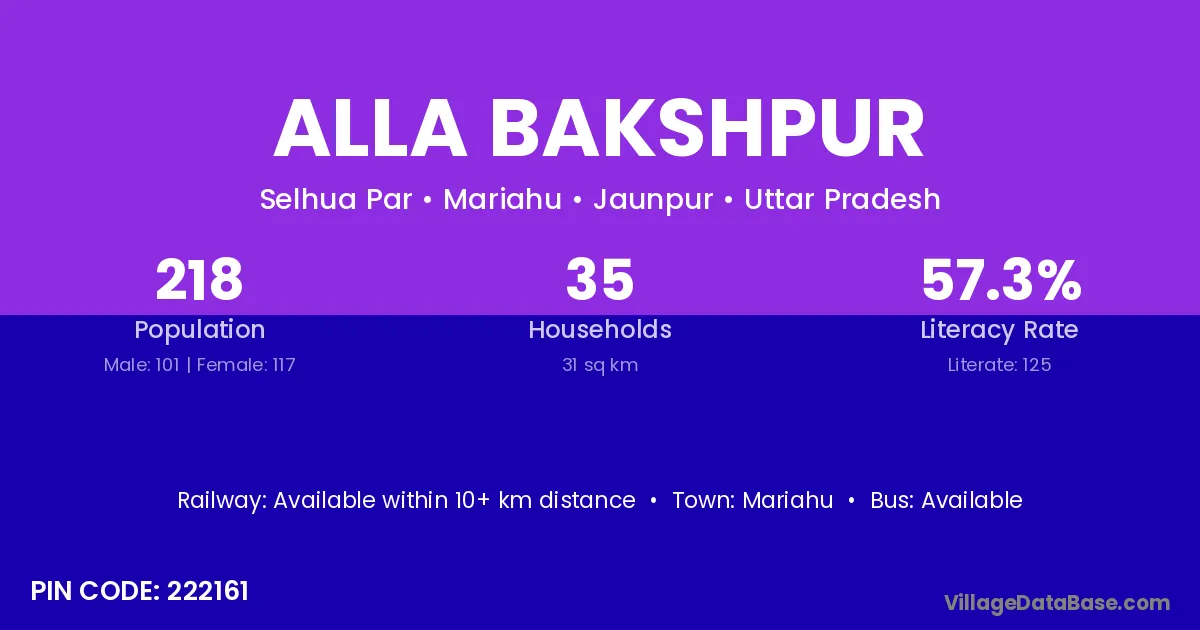 Mariahu is the nearest town to Alla Bakshpur village for major economic activities