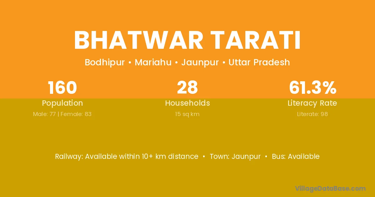 Jaunpur is the nearest town to Bhatwar Tarati village for major economic activities