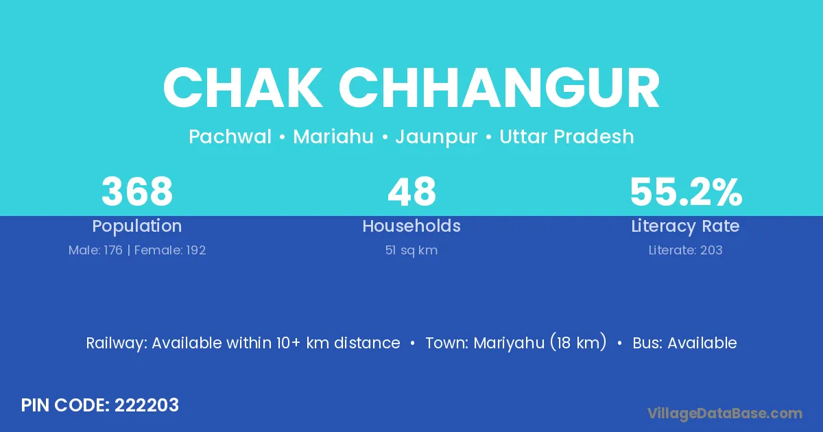 Mariyahu (18 km) is the nearest town to Chak Chhangur village for major economic activities and is located approximately 18 km away.