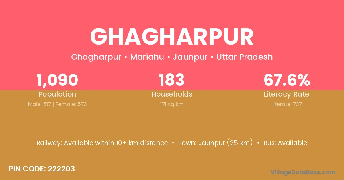 Jaunpur (25 km) is the nearest town to Ghagharpur village for major economic activities and is located approximately 25 km away.
