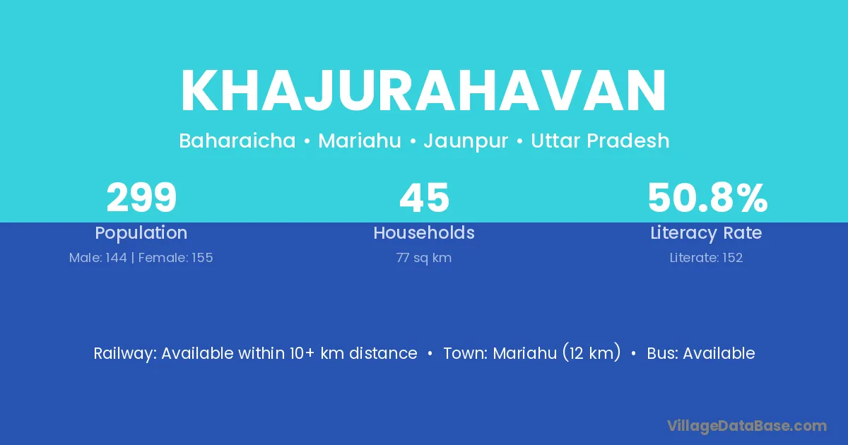 Mariahu (12 km) is the nearest town to Khajurahavan village for major economic activities and is located approximately 12 km away.