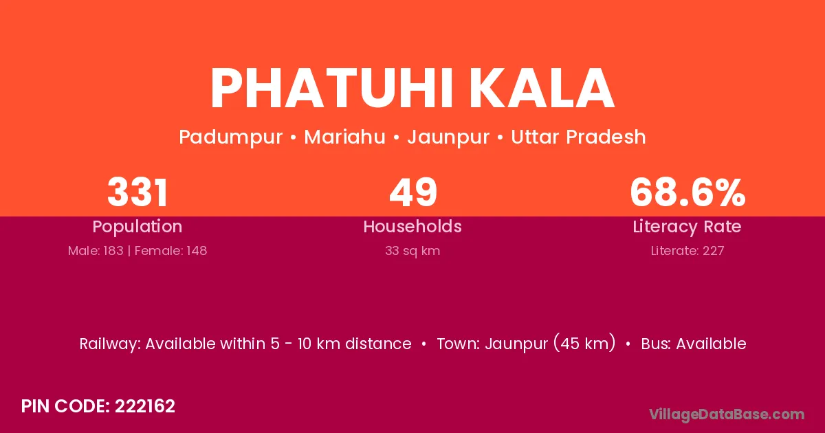 Jaunpur (45 km) is the nearest town to Phatuhi Kala village for major economic activities and is located approximately 45 km away.