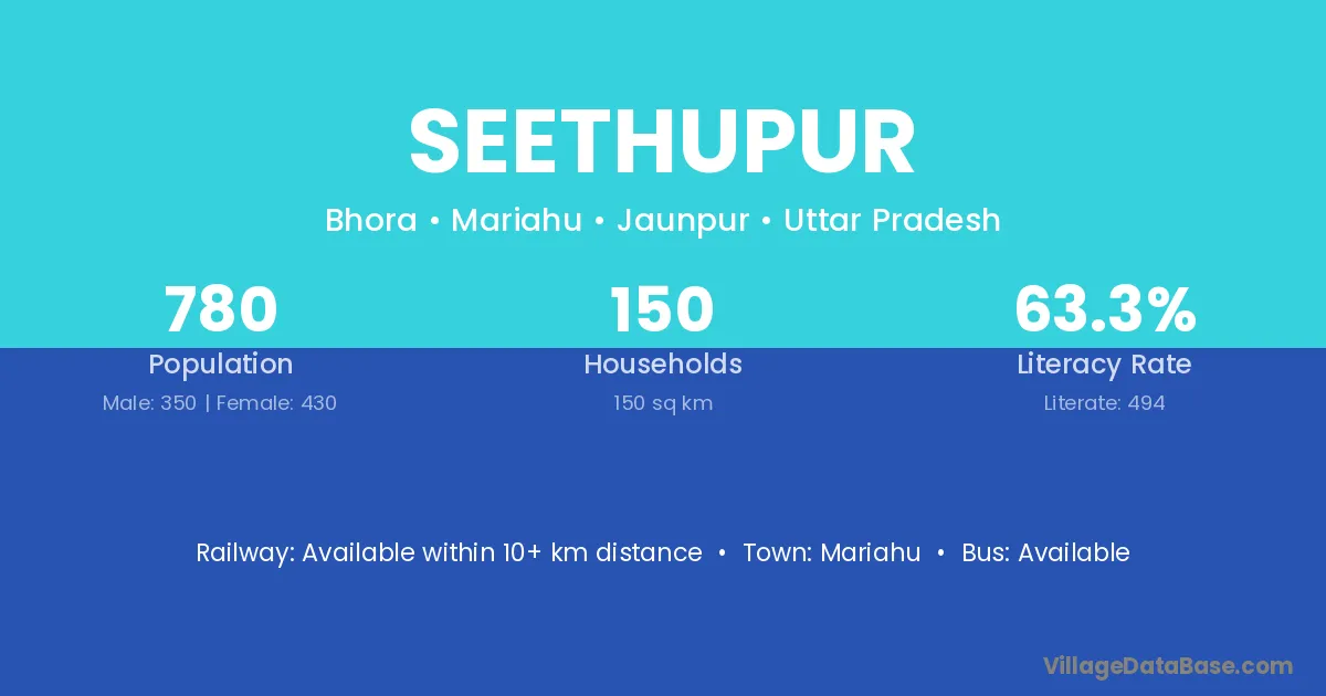 Mariahu is the nearest town to Seethupur village for major economic activities