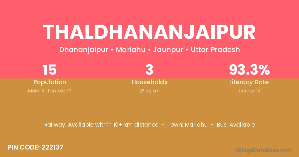 Thaldhananjaipur village has a total population of 15 people, of which 5 are males and 10 are females.