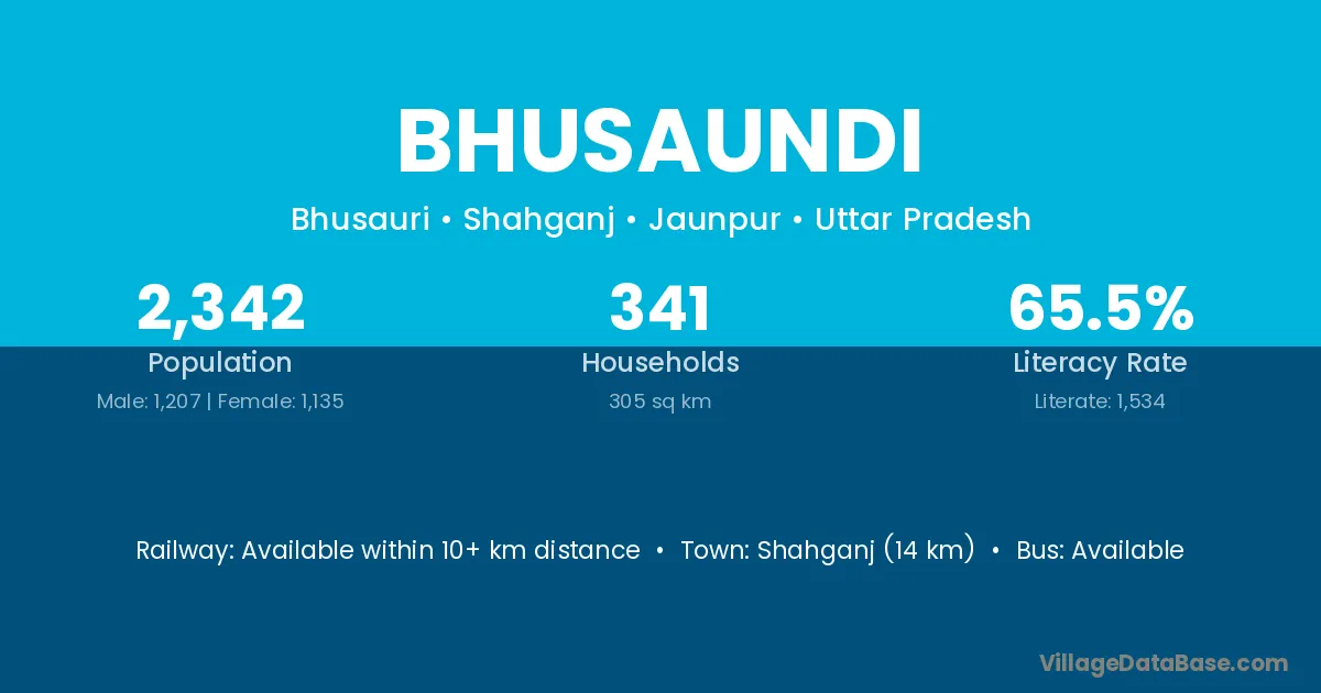 Shahganj (14 km) is the nearest town to Bhusaundi village for major economic activities and is located approximately 14 km away.