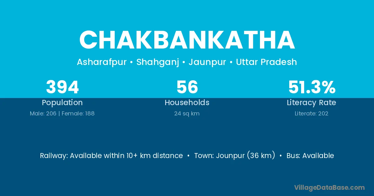 Jounpur (36 km) is the nearest town to Chakbankatha village for major economic activities and is located approximately 36 km away.