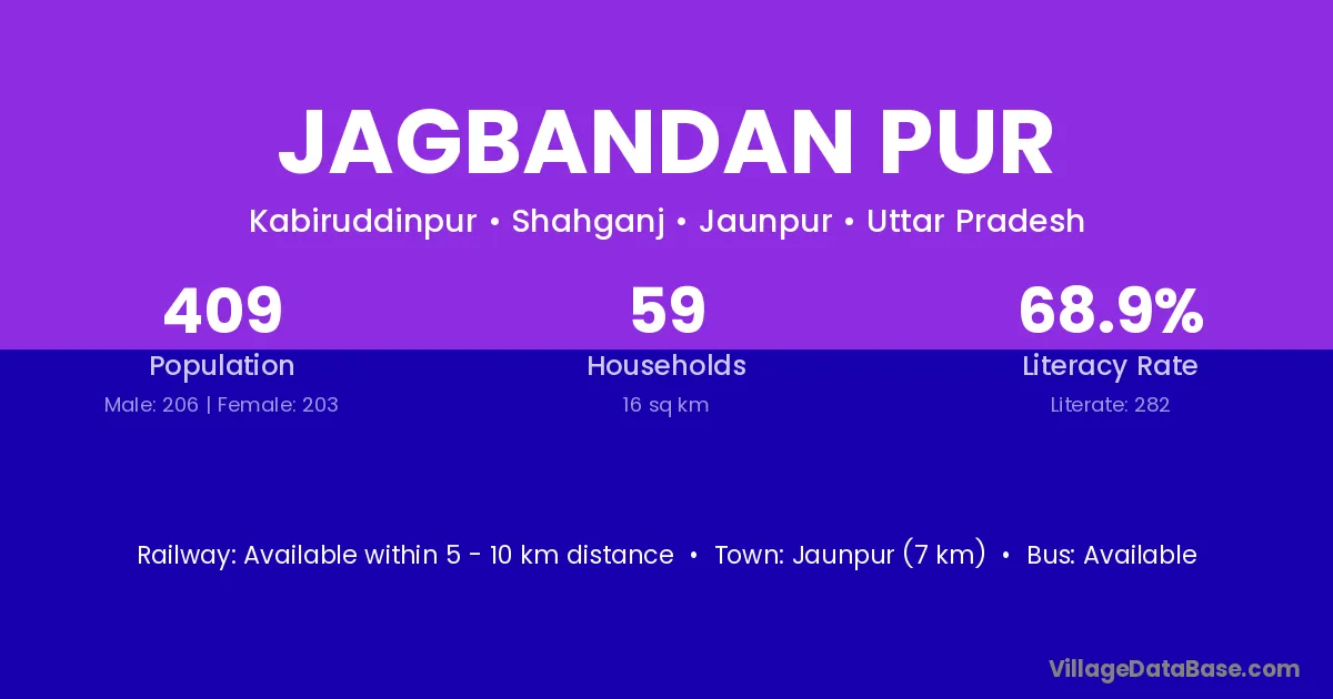 Jaunpur (7 km) is the nearest town to Jagbandan Pur village for major economic activities and is located approximately 7 km away.