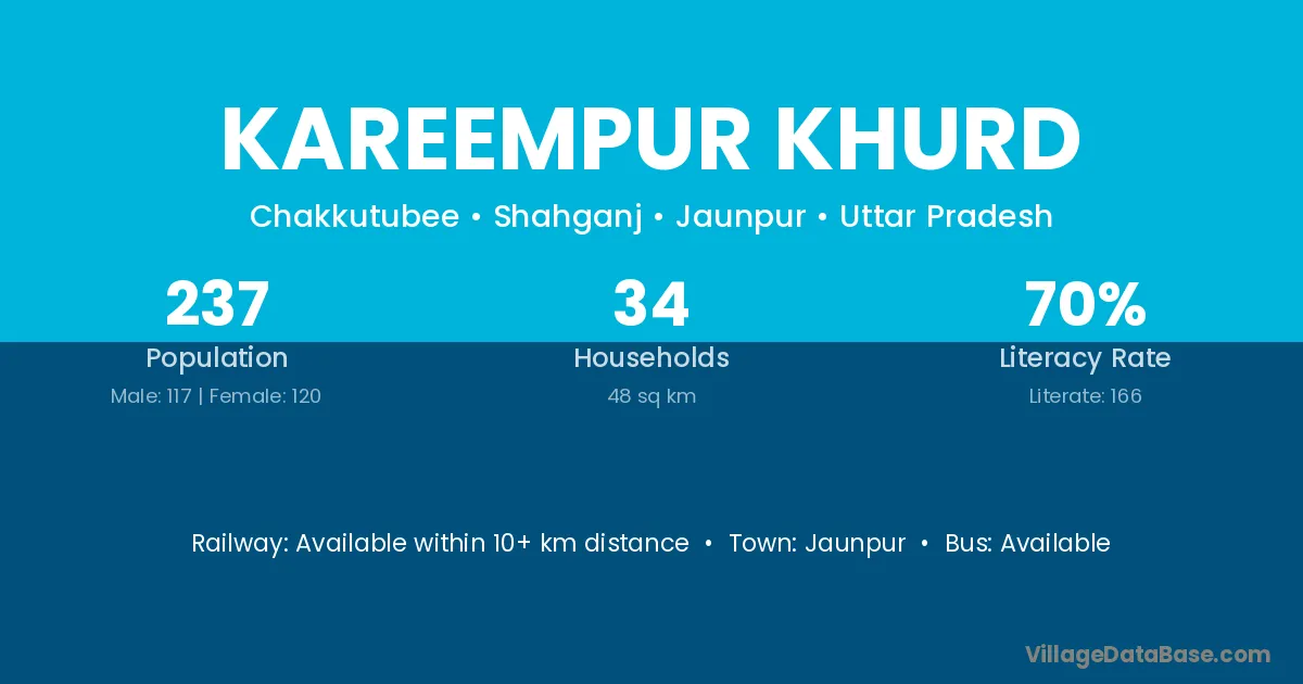 Kareempur Khurd village has a total population of 237 people, of which 117 are males and 120 are females.