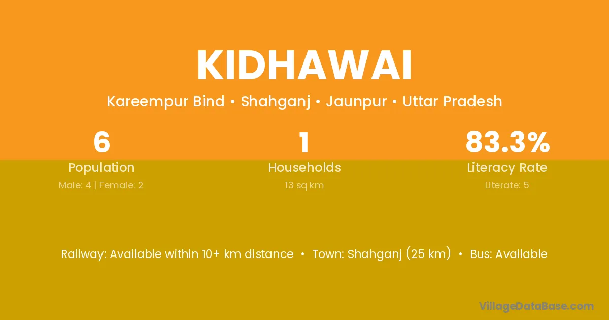 Shahganj (25 km) is the nearest town to Kidhawai village for major economic activities and is located approximately 25 km away.