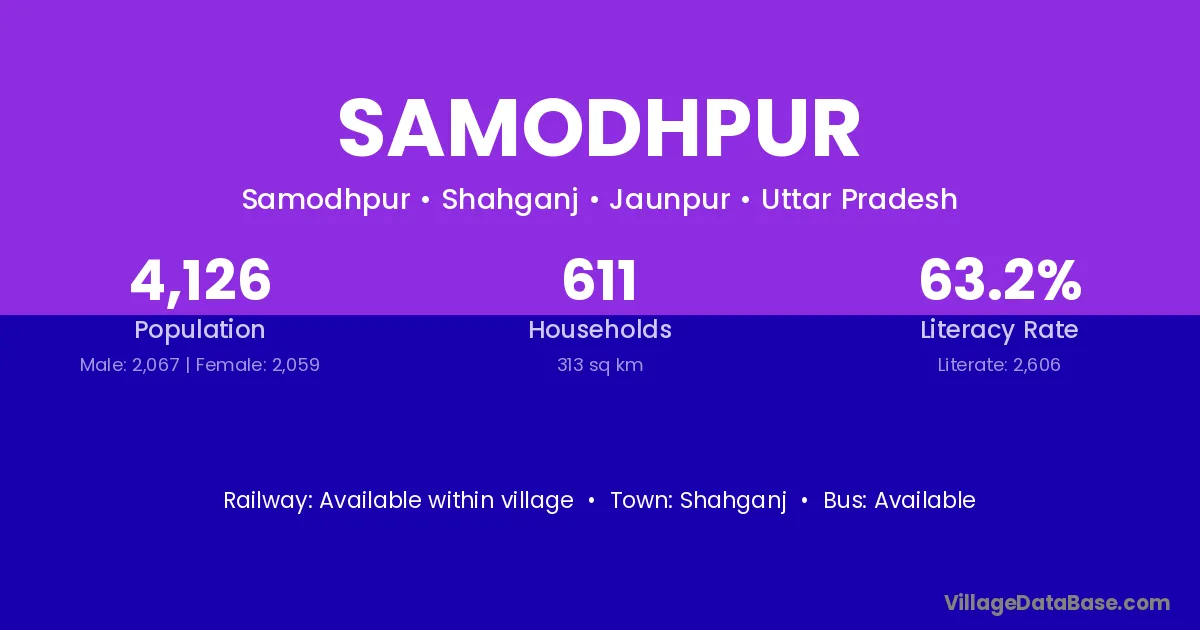 Shahganj is the nearest town to Samodhpur village for major economic activities