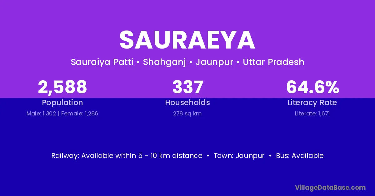 Jaunpur is the nearest town to Sauraeya village for major economic activities