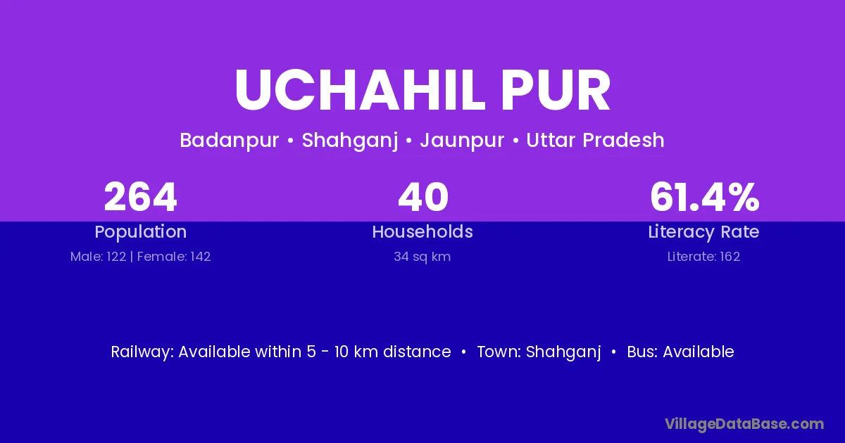 Uchahil Pur village has a total population of 264 people, of which 122 are males and 142 are females.