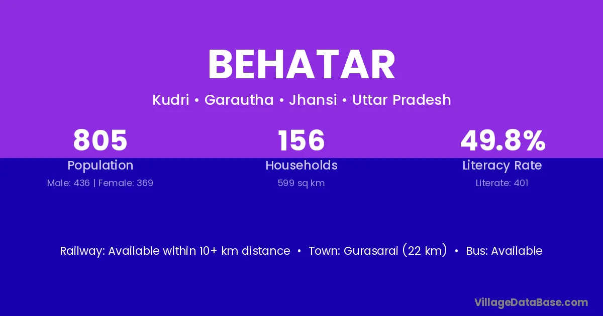 Gurasarai (22 km) is the nearest town to Behatar village for major economic activities and is located approximately 22 km away.