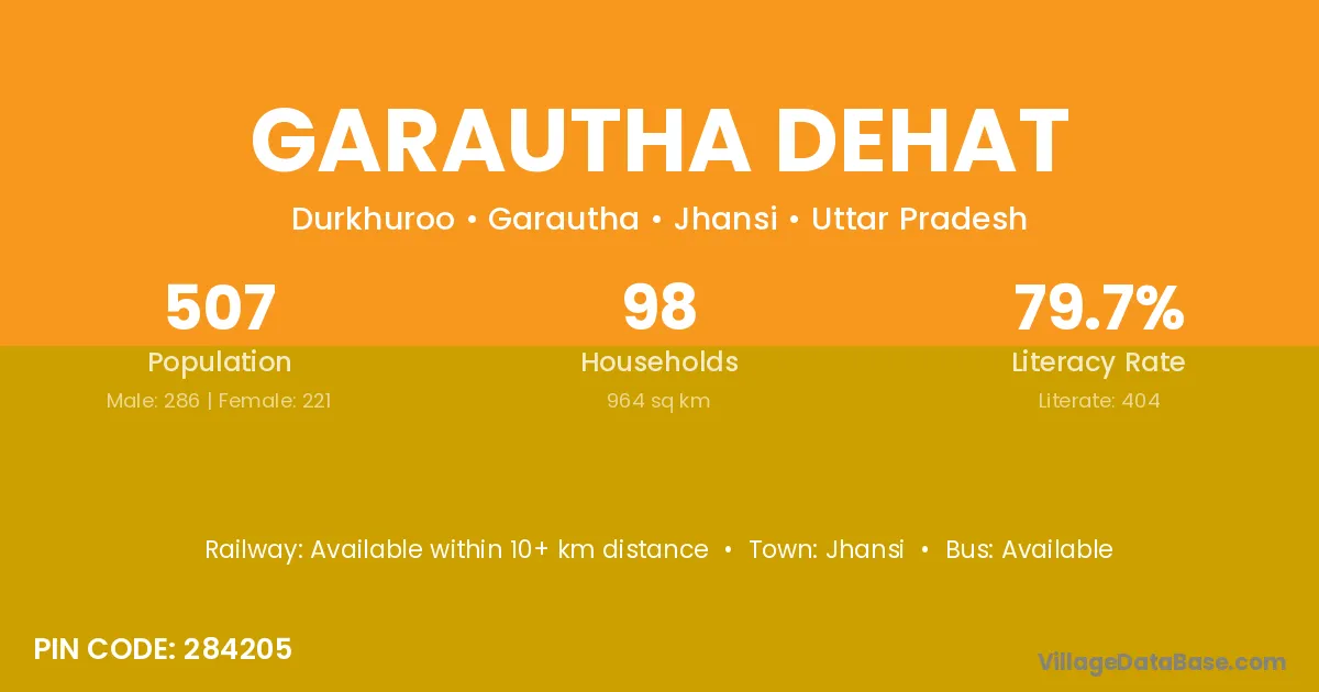 Jhansi is the nearest town to Garautha Dehat village for major economic activities