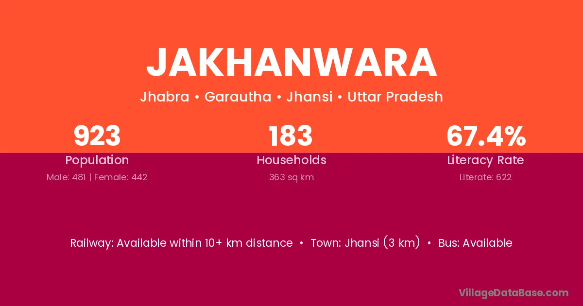 Jhansi (3 km) is the nearest town to Jakhanwara village for major economic activities and is located approximately 3 km away.