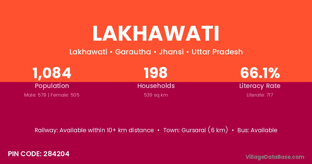 Lakhawati village has a total population of 1,084 people, of which 579 are males and 505 are females.