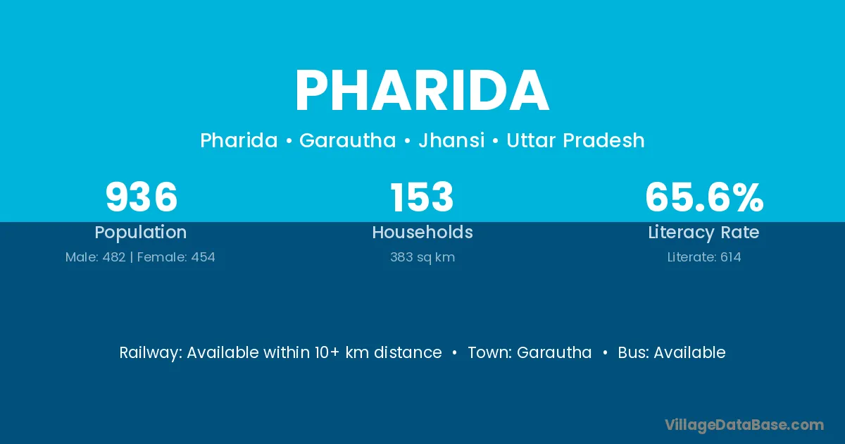 Pharida village is located in the Garautha Tehsil of the Jhansi district in Uttar Pradesh .