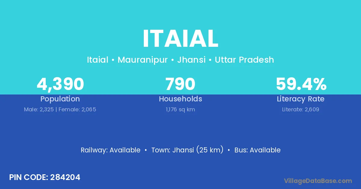 Jhansi (25 km) is the nearest town to Itaial village for major economic activities and is located approximately 25 km away.