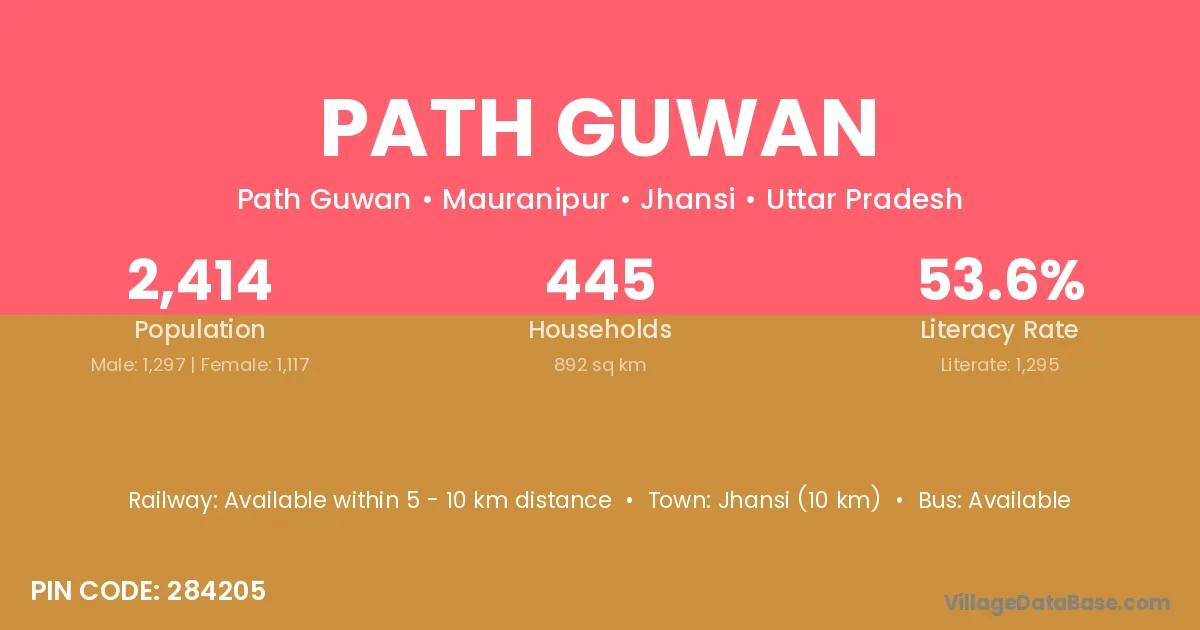 Jhansi (10 km) is the nearest town to Path Guwan village for major economic activities and is located approximately 10 km away.