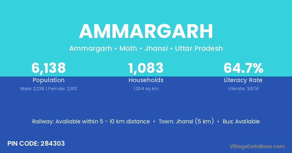 Jhansi (5 km) is the nearest town to Ammargarh village for major economic activities and is located approximately 5 km away.