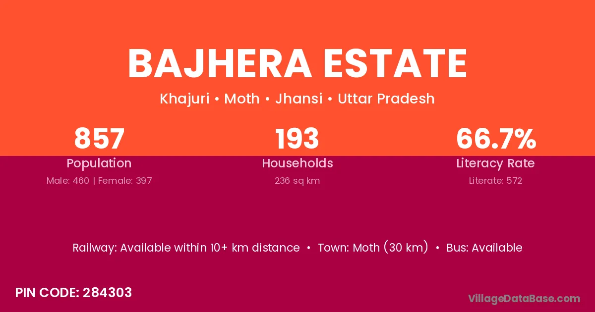 Moth (30 km) is the nearest town to Bajhera Estate village for major economic activities and is located approximately 30 km away.