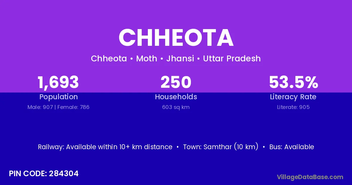 Samthar (10 km) is the nearest town to Chheota village for major economic activities and is located approximately 10 km away.