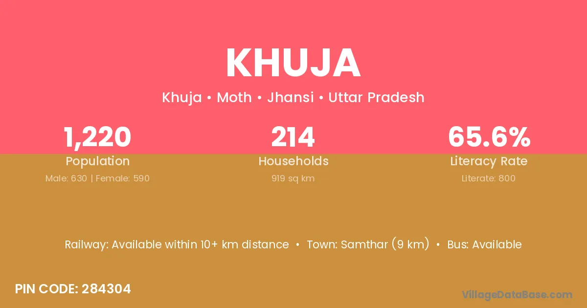 Samthar (9 km) is the nearest town to Khuja village for major economic activities and is located approximately 9 km away.