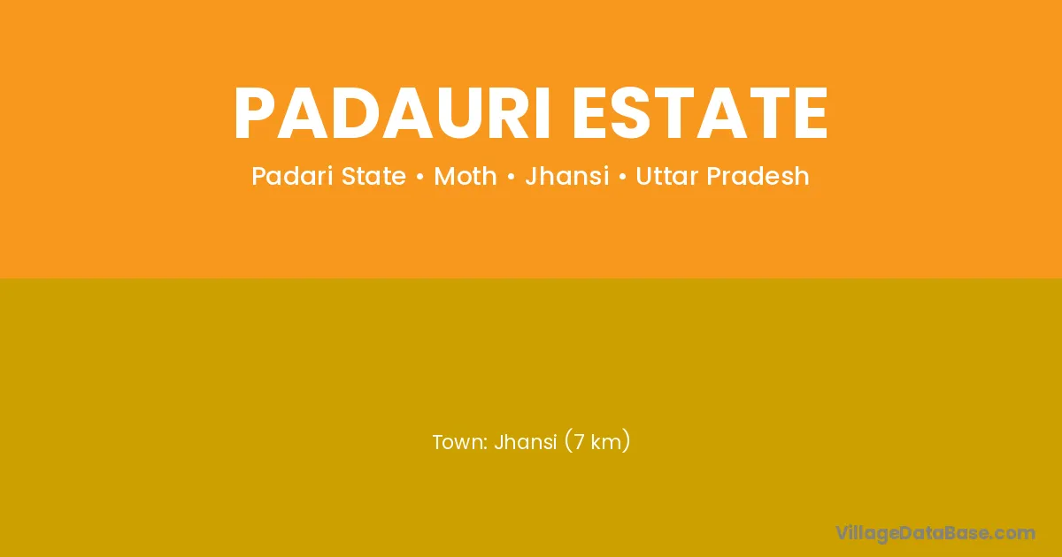 Jhansi (7 km) is the nearest town to Padauri Estate village for major economic activities and is located approximately 7 km away.