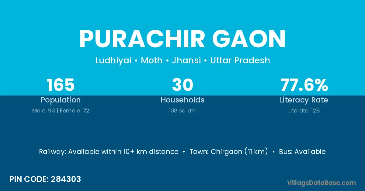 Purachir Gaon village is located in the Moth Tehsil of the Jhansi district in Uttar Pradesh .
