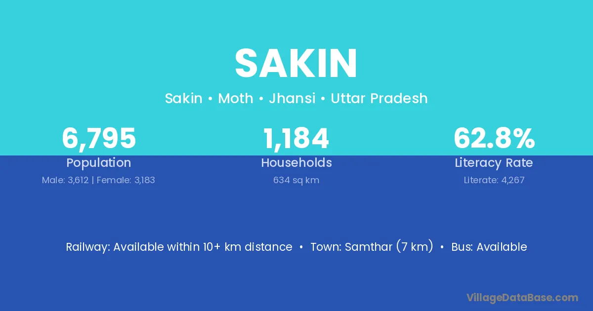 Samthar (7 km) is the nearest town to Sakin village for major economic activities and is located approximately 7 km away.