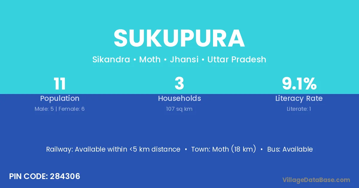 Moth (18 km) is the nearest town to Sukupura village for major economic activities and is located approximately 18 km away.